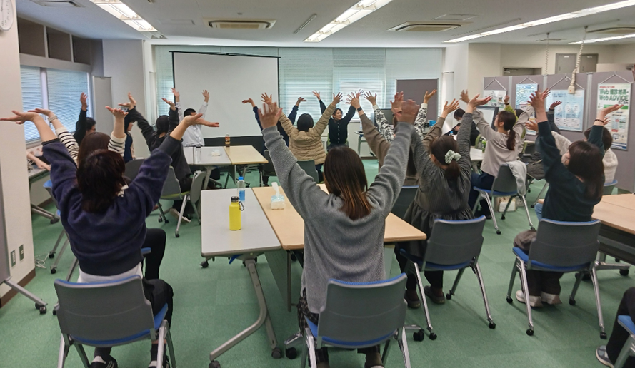 リフレッシュを兼ねた体操を実施。