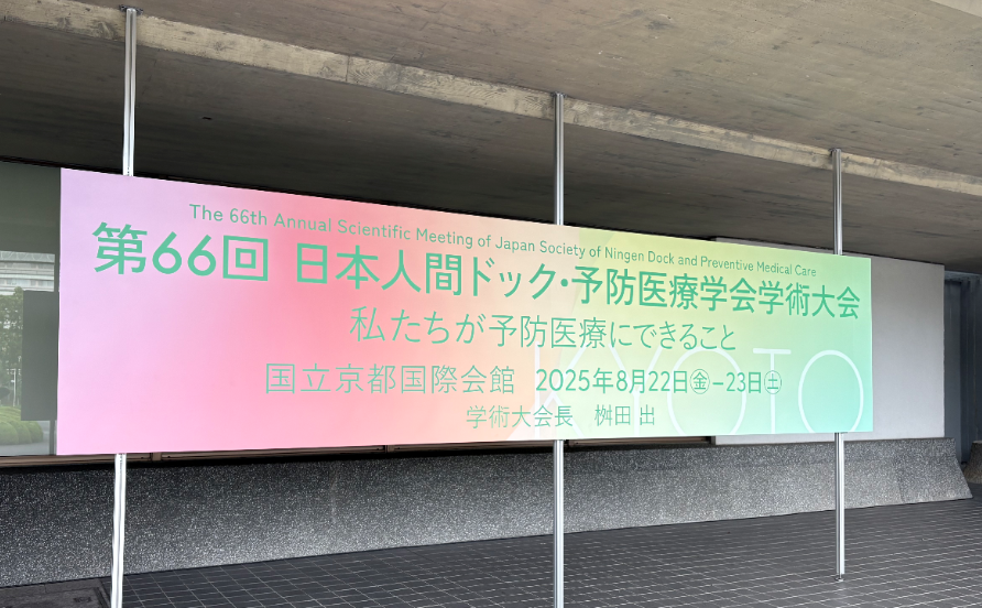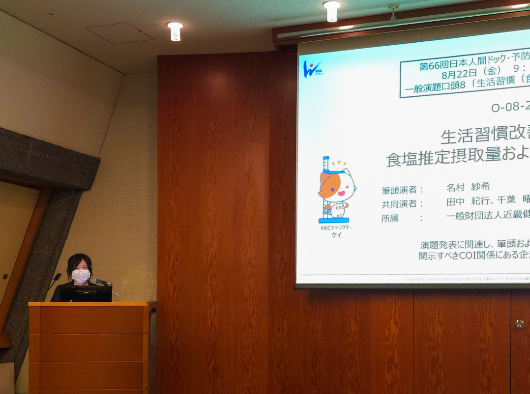 8月22日~23日に国立京都国際会館で開催された、第66回日本人間ドック・予防医療学会学術大会に参加し、『生活習慣改善による食塩推定摂取量および血圧への影響』というタイトルで口頭発表を行いました。