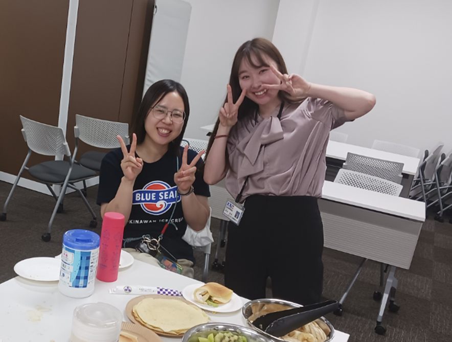 業務を終えた職員が次々と会場に集まり、どの食事も大盛況でした。今年も職員のお子さんたちが多数参加してくれ、毎年参加している子は慣れた手つきでクレープを焼いてくれたり、浴衣姿で来てくれた子もいて、会場は一気に華やかで温かい雰囲気に包まれました。