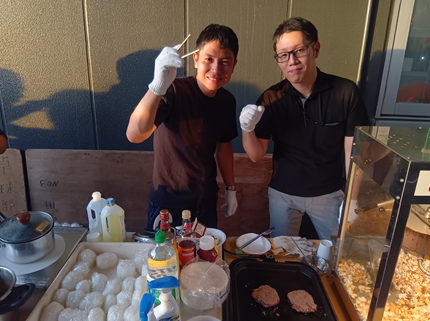 当日は正午ごろから下準備を行い、学生時代の文化祭のように、職員一丸となってバーベキュー会を作り上げていこうと準備に取り組みました。社内がだんだんと料理の良いにおいに包まれていき、祭囃子の音が聞こえてくるようで、多くの職員がそわそわしながら終業の時間を心待ちにしていたと思います。