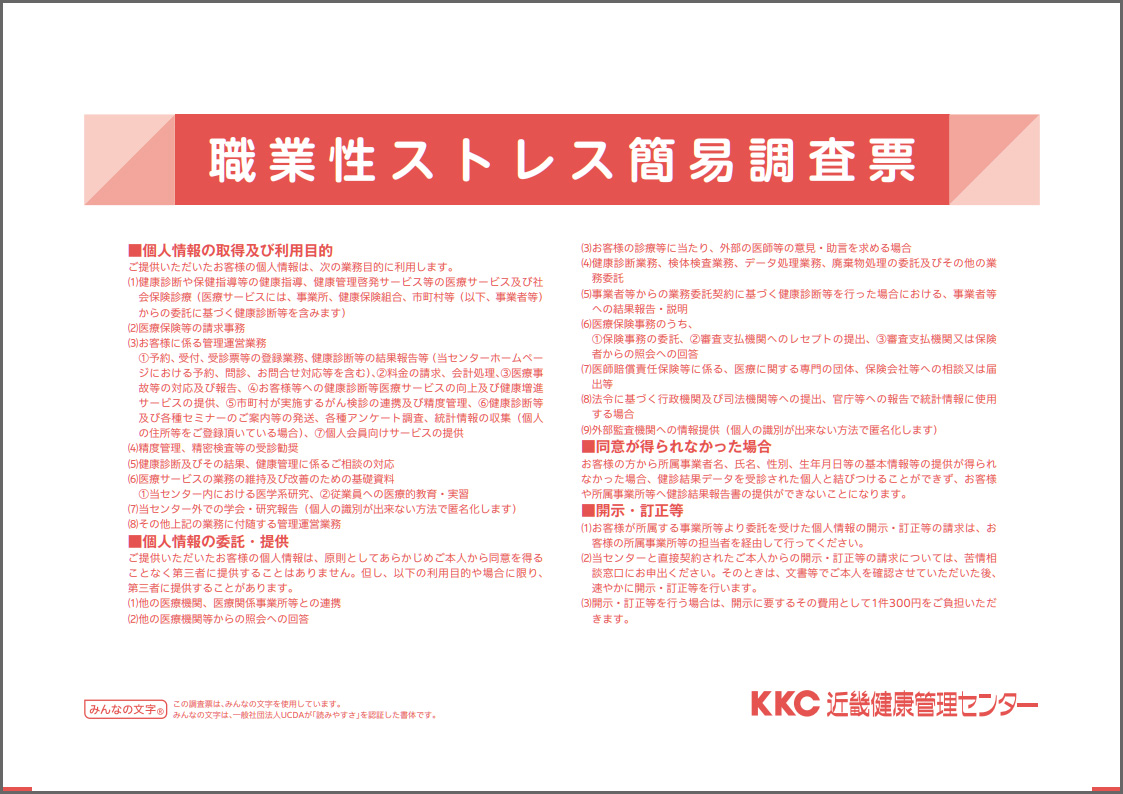 KKCでは、「職業性ストレス簡易調査票(57項目)」のサービスを提供しております。