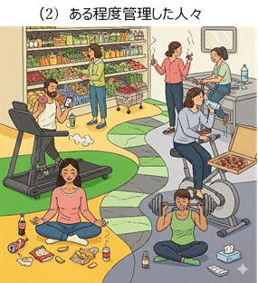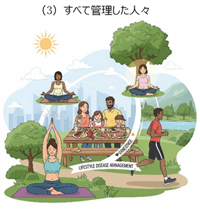 その結果、(3)のすべて管理した人々は、認知機能の低下がほぼ横ばいで、自立した生活を維持できていました。それに対し、(1)のまったく管理しなかった人々は、認知機能が急激に低下し、2年半で人の助けがなければ生活できないレベルにまで悪化してしまいました。